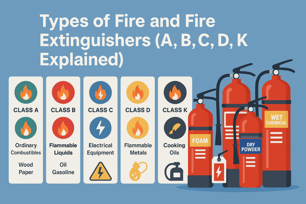 Types of Fire and Fire Extinguishers (A, B, C, D, K Explained)